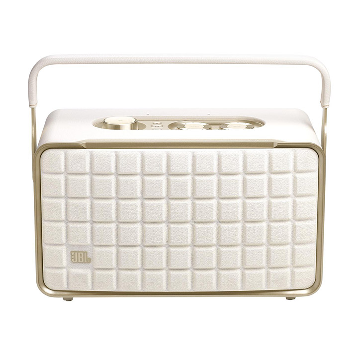 Enjoy retro style, amazing audio, and built-in dual voice assistants anywhere in your home. With the JBL Authentics 300 speaker's leatherlike enclosure, convenient metal handle, and built-in rechargeable battery, you can take your music with youfrom the kitchen for your dinner-prep playlist to the bedroom for your wind-down podcast. Its retro '70s-inspired design featuring the iconic Quadrex grille makes a bold statement anywhere you set it down. And so do its wide soundstage, crystal-clear highs, and deep bass. With Google Assistant and Amazon Alexa available simultaneously, you can play your favorite music, control your smart home devices, and more, hands-free, using just your voice.