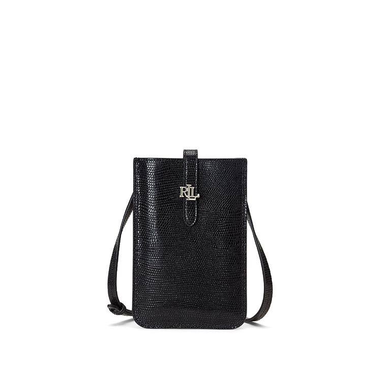Keep your phone within reach while remaining hands-free with Lauren Ralph Lauren's crossbody tech case. Mini sized bag; 4-3/4"W x 7"H x 1"D. 0.21 lbs. approx. weight. 20-1/2" adjustable crossbody strap. Snap closure. Leather; lining: polyester. Professional leather clean