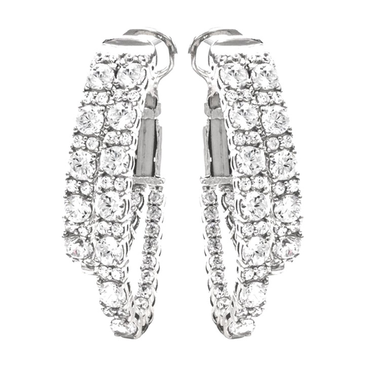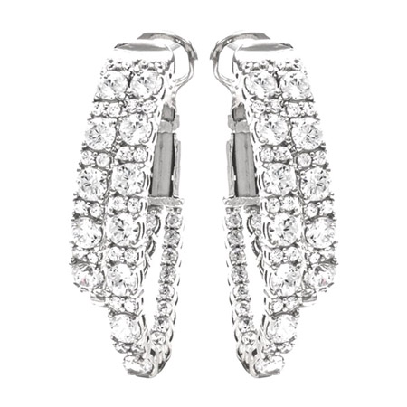Antwerp Silver’s “Double Leg” huggie-style earrings are made of sterling silver with 80 round cubic zirconia weighing about 8 carats. The earrings are in a prong setting and perfect for everyday sparkle or a glamorous night out.
