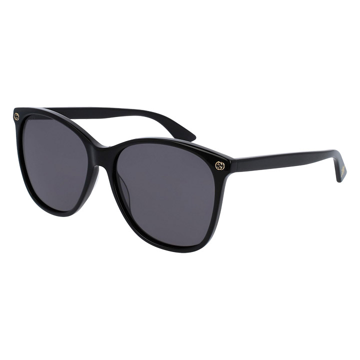 These oversized round sunglasses from Gucci have a classic shape with a young twist thanks to the GE interlocking metal sticker logos on the front. This women's style is characterized by the lightness of the acetate both on the front and the temple. They feature Gucci iconic bee hot-foil printing in the end tip and come with a hard protective case, satin pouch, and cleaning cloth. Made in Italy. Measure 58mm x 16mm x 140mm.