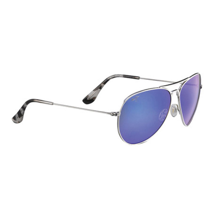 Now available with Blue Hawaii lenses, these Maverick sunglasses from Maui Jim are inspired by a popular surfing destination in Northern California, known for its Hawaii-like 25-foot waves. Part of the Aviator family, it has a silver titanium frame and Maui Jim’s patented Polarized Plus2 technology.