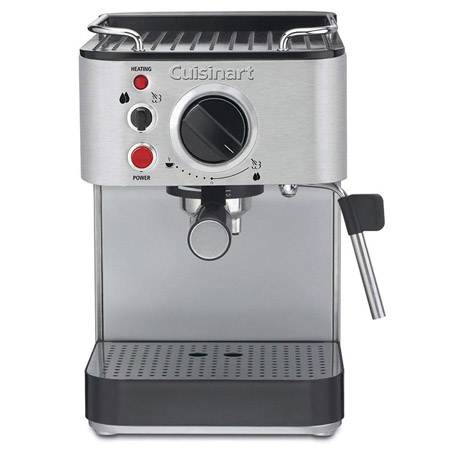 Imagine the aroma of a fresh cup of your favorite espresso beverage- hot, rich, bold, and flavorful. Now, make your imagination reality with the stainless steel Cuisinart Espresso Maker. Press an espresso and then use the stainless steam nozzle and frothing cup to transform it into a latte or cappuccino. You can even heat cups on the warming plate above to keep your beverage steaming hot.