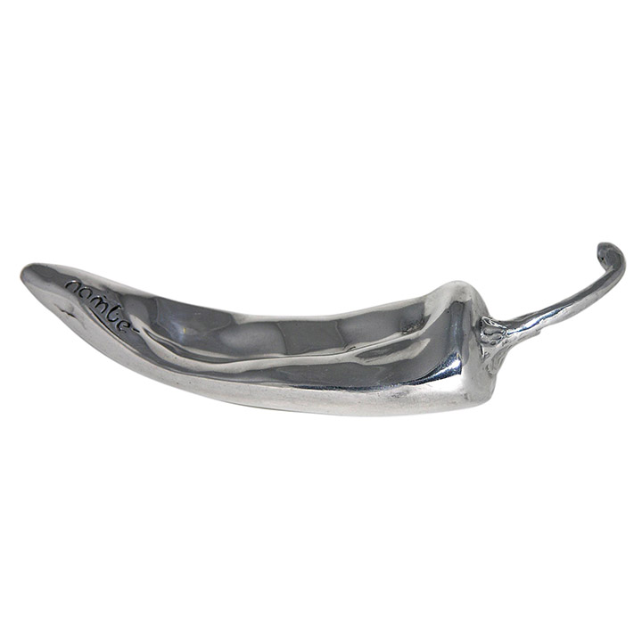 Never too strong or too bland, our Nambe Chile always adds just the right amount of zest to a sunny kitchen windowsill or desktop pile of papers. As chile aficionados know, New Mexico is famous for its red and green peppers, so it seems only fitting that another New Mexico institution, Nambe, should produce its own variety. Ours is realistically sand-cast of our own metal alloy and hand-polished to a sizzling sheen. Just to toot our own horn a bit, we emblazon our name on the tip. Give the pepper person in your life extra spice with this 6-inch beauty, and keep one for yourself. It just might be the beginning of a beautiful gastronomic friendship.