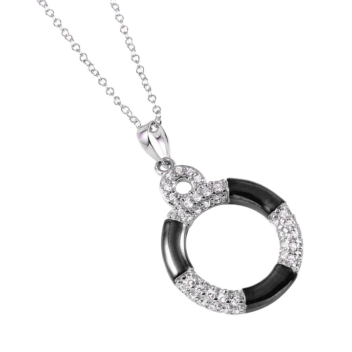 This lifebuoy cubic zirconia necklace features a nautical-inspired design crafted in rhodium plating over 925 sterling silver for a sleek, polished finish. Made by Parikhs, it sparkles with cubic zirconia accents, adding a touch of elegance to maritime charm.