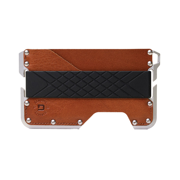 Designed to hold up to 12 cards with RFID-blocking, the Dapper wallet in whiskey brown from Dango Products keeps your information secure and is made from genuine top-grain leather and 6061 aerospace-grade CNC’d aluminum. This sleek wallet, which even has a built-in bottle opener, weighs just over 2 ounces and is just over 0.3” thick when six cards are inside.