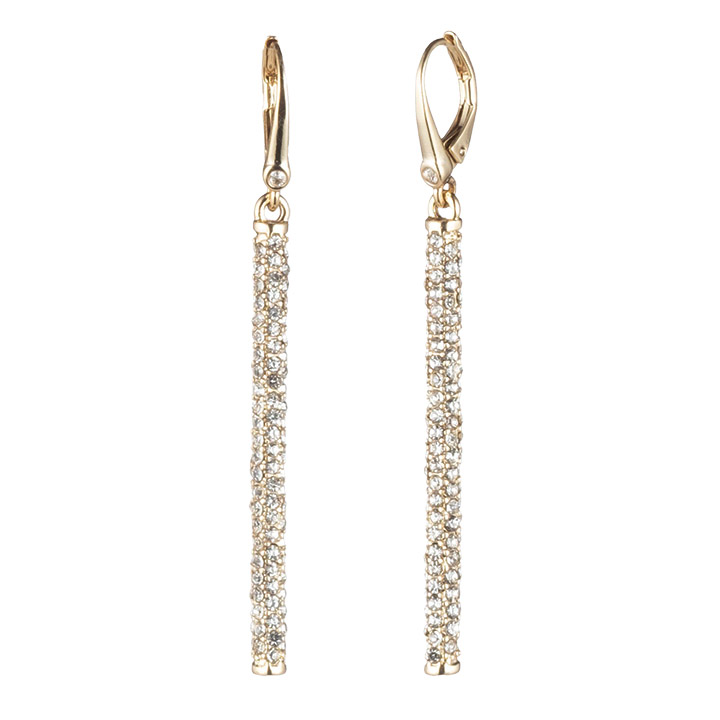 Outshine any shade with these linear drop earrings by DKNY, plastered with micro pavé crystals. They’re pierced with a lever-back closure and 2.25” drop.