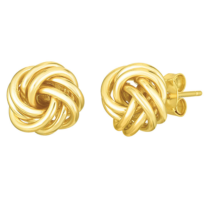 These earrings are a fresh interpretation of the love knot: a symbol of the unbreakable and eternal connection between two lovers. The earrings are made of sterling silver with yellow-gold overlay and are made for pierced ears.