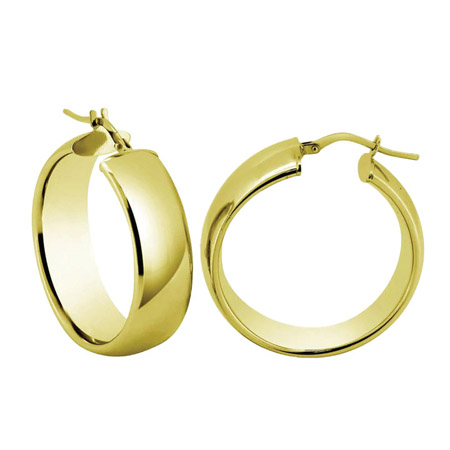 These 9mm wide latch-back puffed hoop earrings feature a bold, rounded design that adds a touch of statement style. Measuring 15mm in diameter and crafted in gold plating over 925 sterling silver, they offer both shine and everyday wearability.