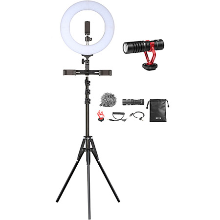 Create a professional-quality filming setup with this SunPak Ultimate vlogging kit. The mini ball head provides flexible camera positioning for imaginative shots while the 14-inch bicolor LED ring light illuminates the space for captivating videos. This SunPak Ultimate vlogging kit features a BOYA microphone for clear audio recordings and the smartphone bar securely holds multiple devices at once.