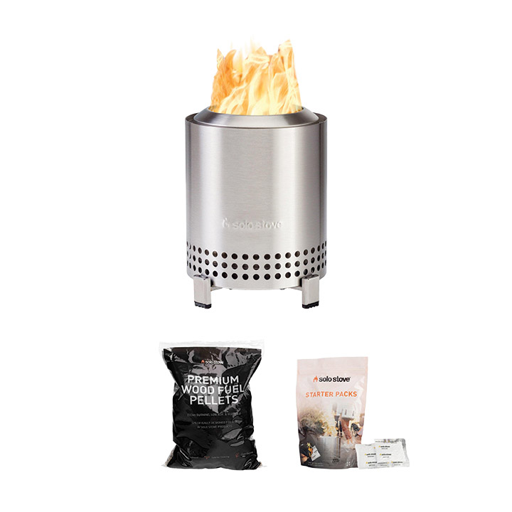Stand offers solid surface and folds for storage. Dual Fuel - Signature 360-Degree Airflow burns pellets or wood. Easy to Light - simply place fuel inside and light firestarter. Long Lasting - 304 stainless steel is highly durable and surprisingly lightweight. Fuel Pellets - 100% hardwood blend. Starter Pack ignite in all weather conditions. 1-2ft Heat radius. Includes: Mesa tabletop fire pit. Premium Wood Fuel Pellets. Starter pack. Nylon carry bag. Mesa stand.