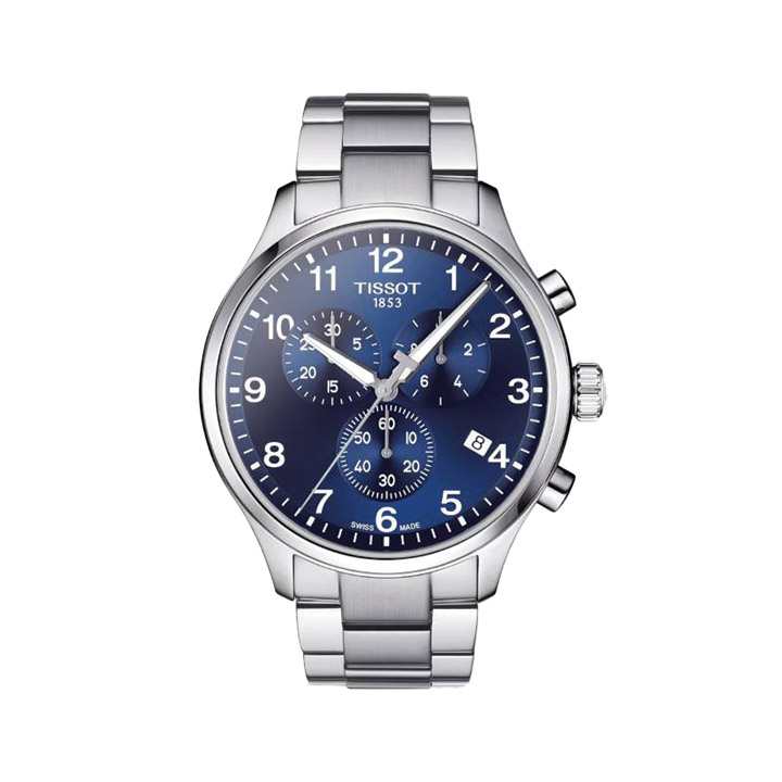 Tissot’s Chrono XL Classic watch will make a sharp statement whenever you wear it. It features a 45mm stainless-steel case and bracelet, a blue chronograph dial and quartz movement.