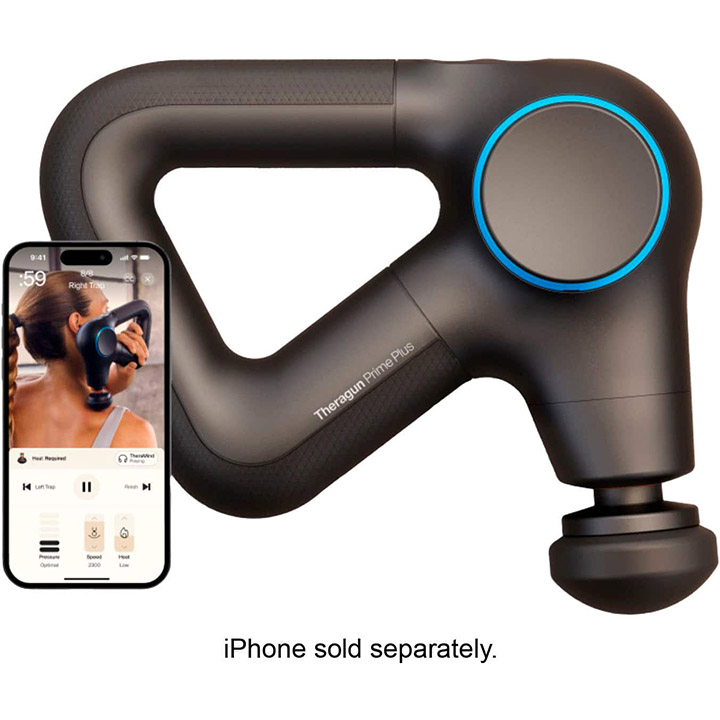 Upgrade your wellness and recovery routine with the Theragun Prime Plus multi-therapy handheld massage gun. Featuring a 2 in-1 Heat + Percussive Massage attachment the Prime Plus delivers massage therapy deep into muscles and is scientifically proven to accelerate recovery optimize warm-ups reduce soreness and relieve pain more effectively than standard percussive massage alone. With multi-therapy attachment capabilities it's compatible with all Theragun multi-therapy Plus Attachments so you can expand your treatments with add-on therapies like Cold or Vibration Therapy (additional Plus Attachments sold separately). Theragun's patented triangle grip and specialized percussive attachments help you reach more of your body and treat large or small muscle groups and sensitive areas with ease. Engineered with a quiet anti-stall motor the Theragun Prime Plus has the power to treat even your most stubborn knots and the versatility to improve sleep reduce stress and increase mobility. Built with ruggedness in mind it's drop-resistant scratch-resistant yet smaller than prior generations so it can go from the living room to the locker room to the garage with ease. Plus connect to the Therabody app and access a library of guided routines that cater to your wellness and recovery needs.