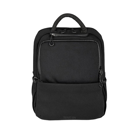 Kenneth Cole’s Logan neoprene backpack features a durable and sleek neoprene body and a padded laptop compartment that holds up to a 16” laptop. It also has a neoprene tablet pocket for most tablets and a hidden open-top slip pocket between the shoulder straps for small items like a passport. Additional pockets include a hidden RFID-blocking pocket safeguards personal information. Measures 11.75” x 16” x 5.25”.